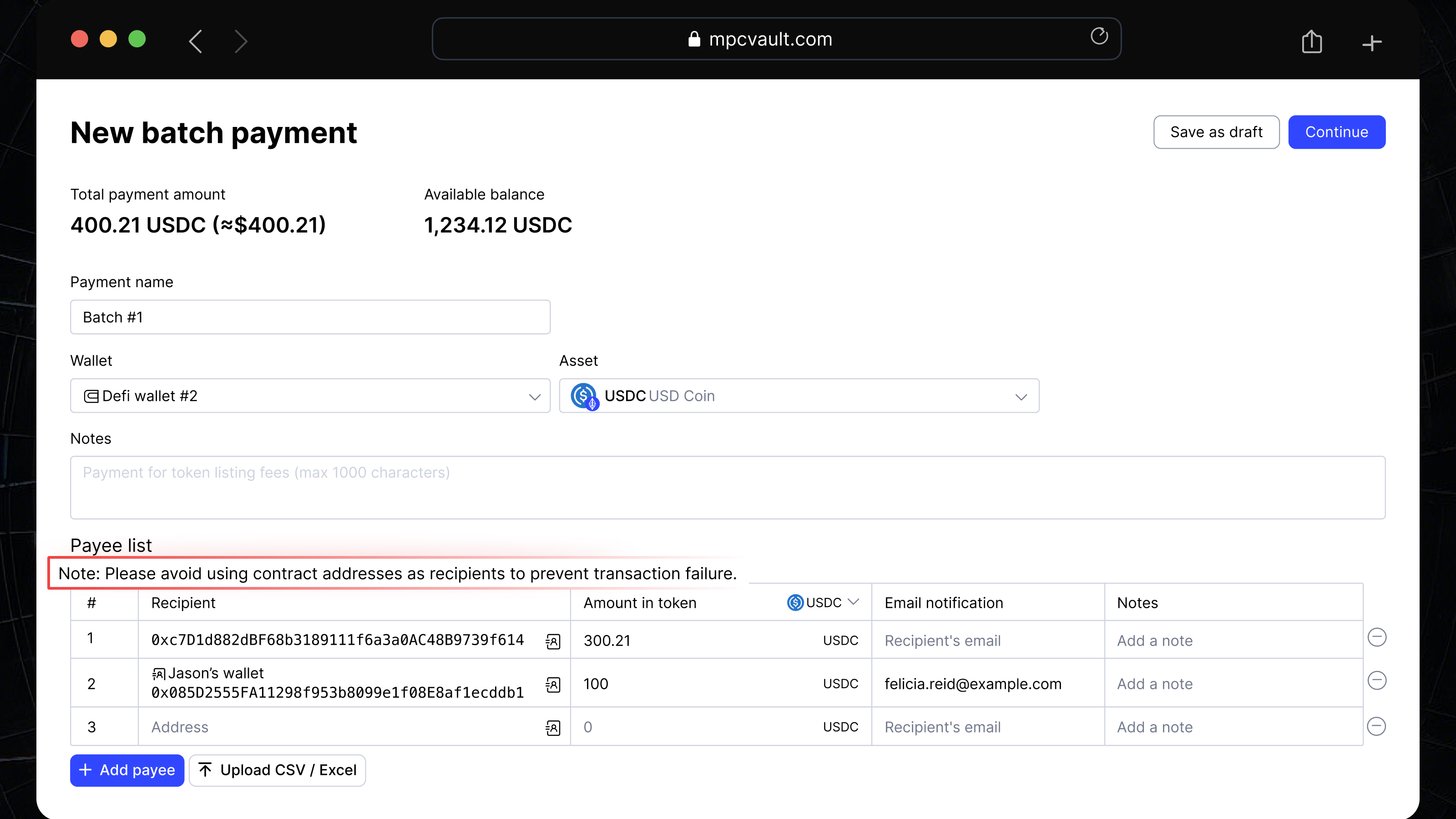 You can now manually set gas fees for batch payment transaction using the web console and mobile app.