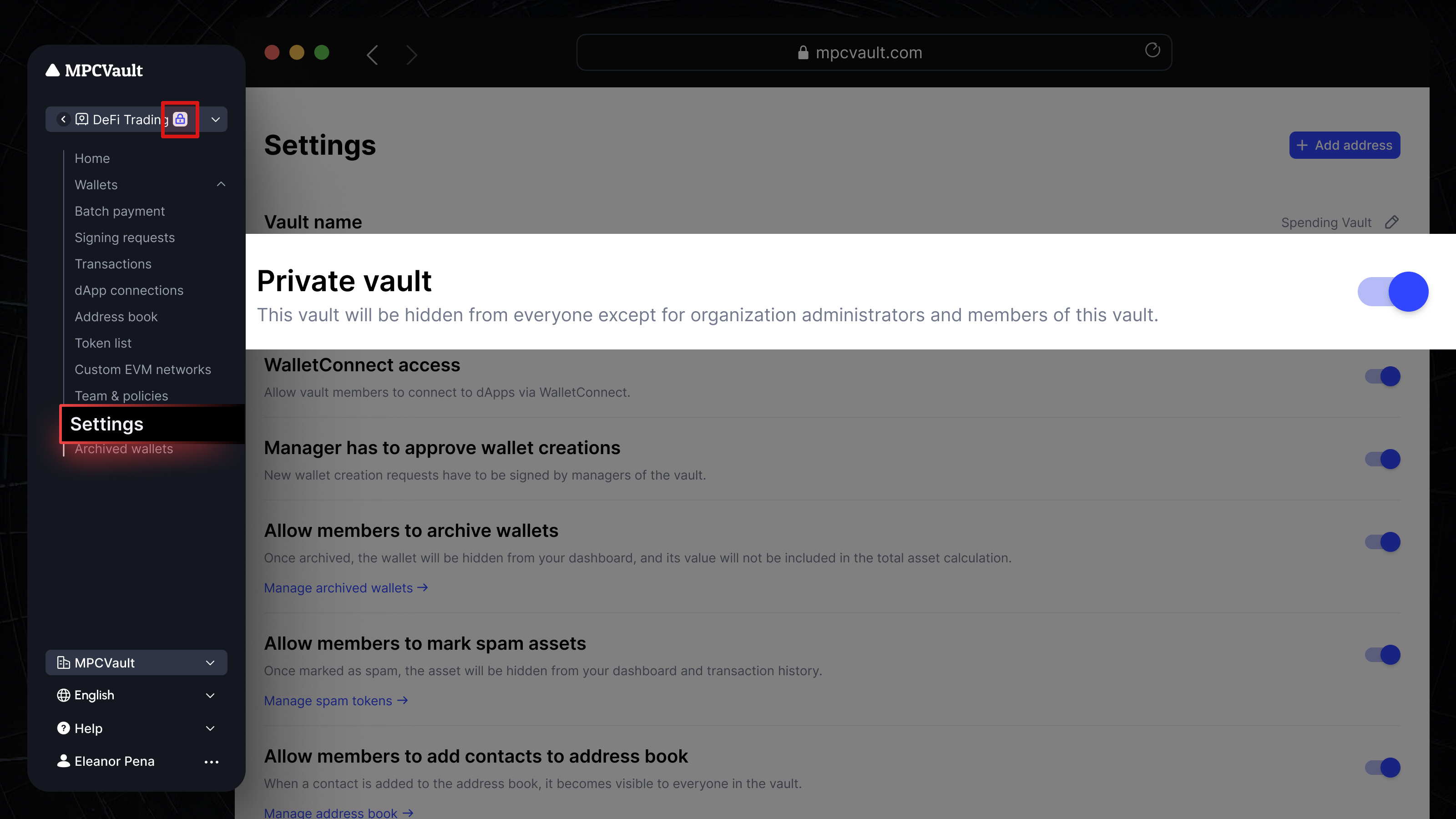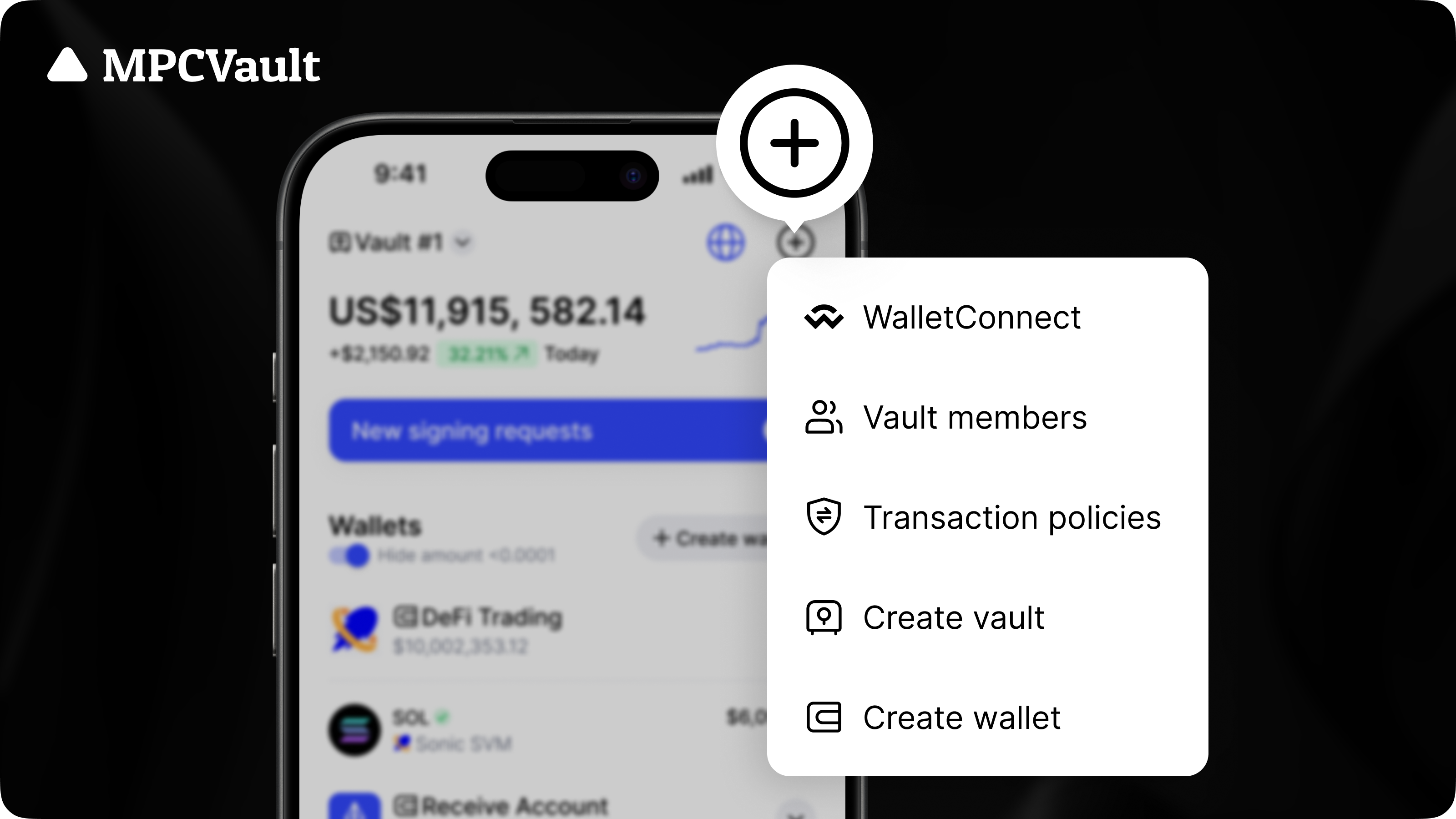 We’ve reorganized the “+” menu for clarity and functionality. You’ll now find WalletConnect, Vault members, Transaction policies, Create vault, and Create wallet all conveniently grouped together for easy access.