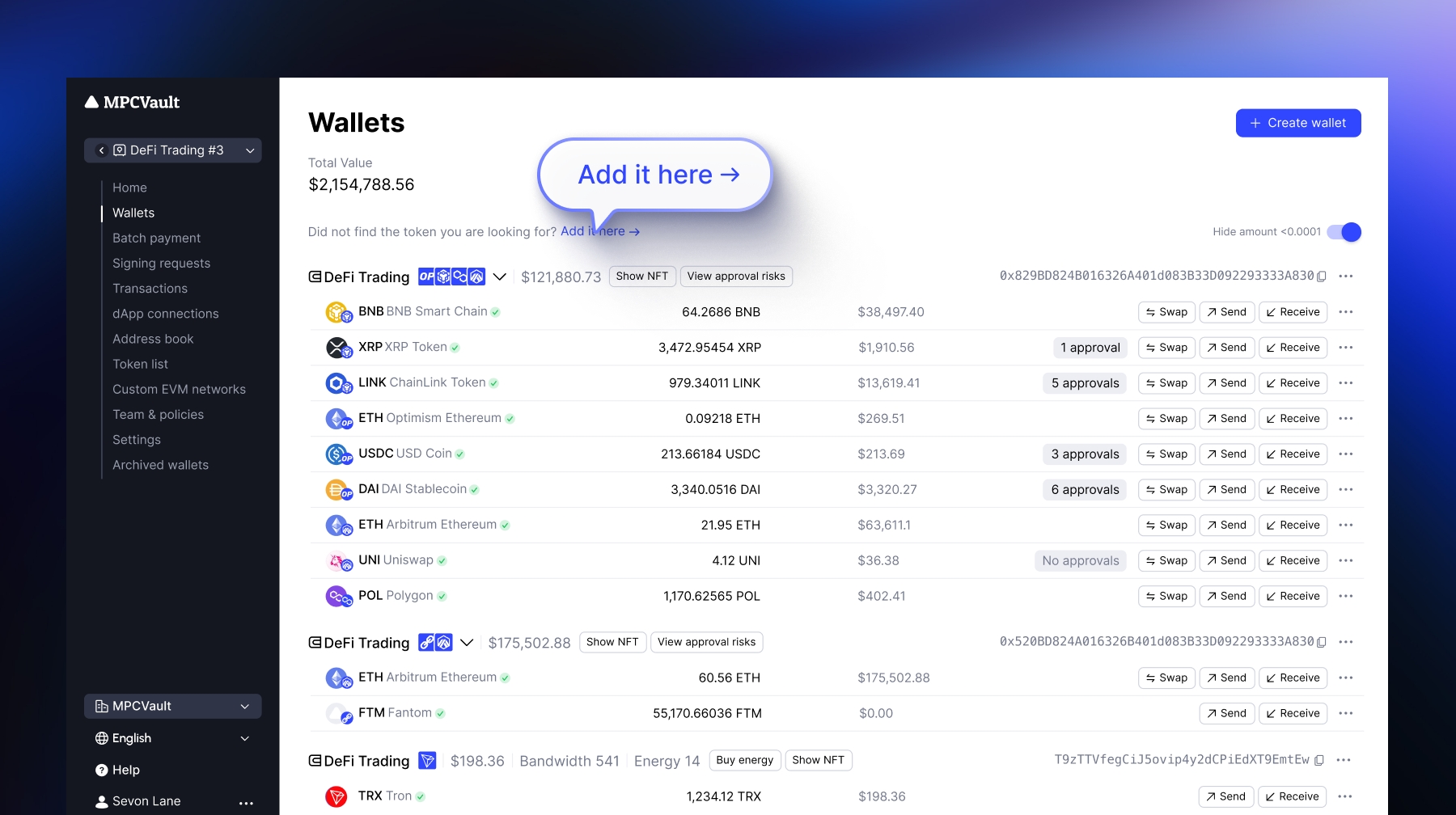 We added a shortcut in the Wallets page for you to quickly add unlisted tokens to MPCVault. Once added, the token will appear in your wallet if it has a non-zero balance.
